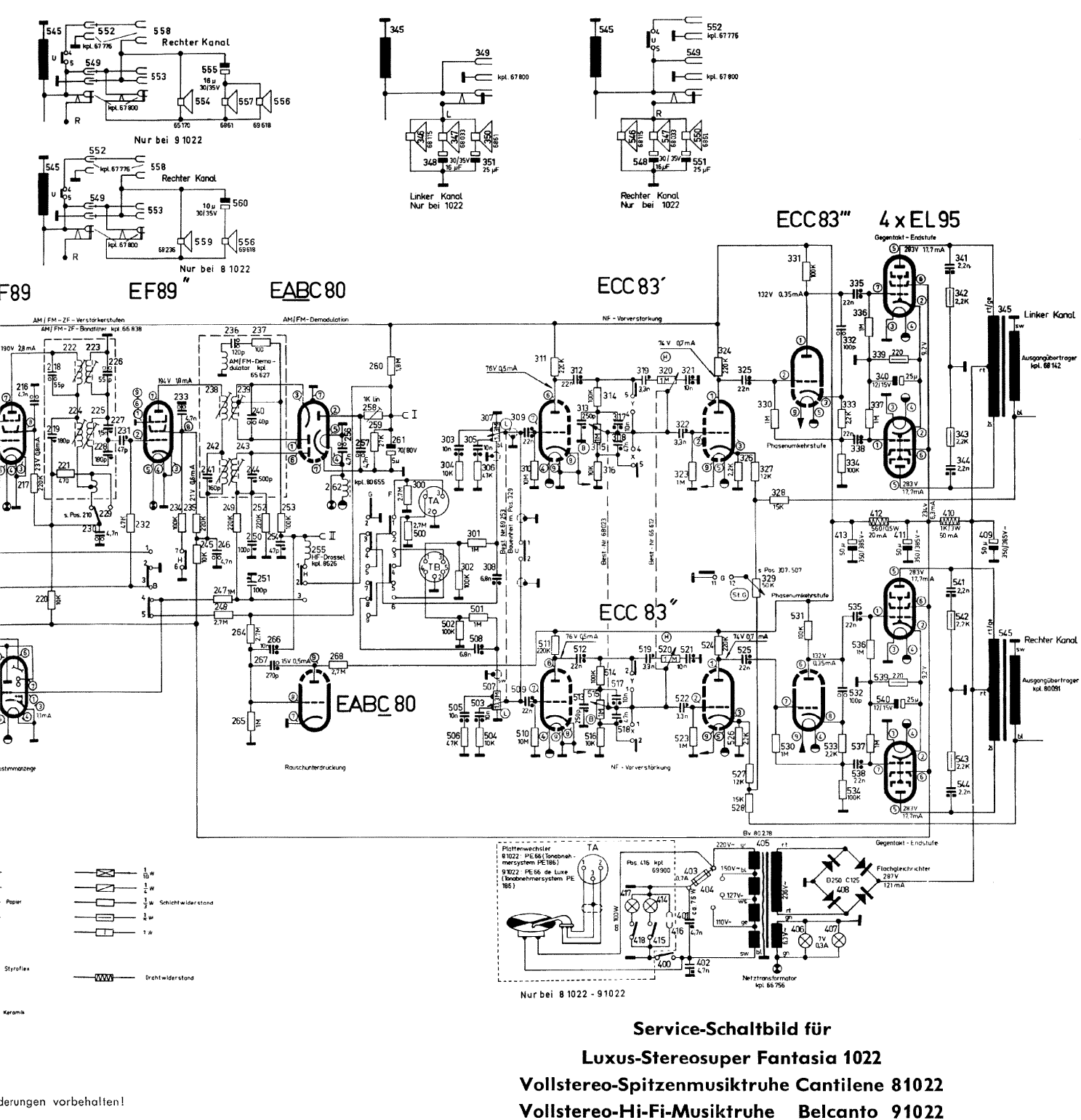 Herzlich Willkommen hier im Forum. Nun zu Deiner Fantasia. Die Ursache für eine insgesamt zu geringe Versorgungsspannung kann der Blockgleichrichter sein, sofern der Ladeelko in Ordnung ist. Das Triodensystem der Röhre EABC80 wird nur bei UKW als Rauschbegrenzung eingesetzt, in den AM- Bereichen hat die Röhre keine Funktion. Deshalb ist hier die Anodenspannung ohne Bedeutung und ergibt sich durch die Bereichsumschaltung. Die Anodenspannung der EL95 mit 250 Volt ist ein gewählter Arbeitspunkt, die Grenze liegt bei 300 Volt. Damit können die Röhren mit 285 Volt sicher betrieben werden. Die Anodenspannung der ECC83 kann höher werden, wenn die Röhre Emissionsverlust hat. Das kann man durch Röhrentausch abklären, ist aber im Wesentlichen bedeutungslos.