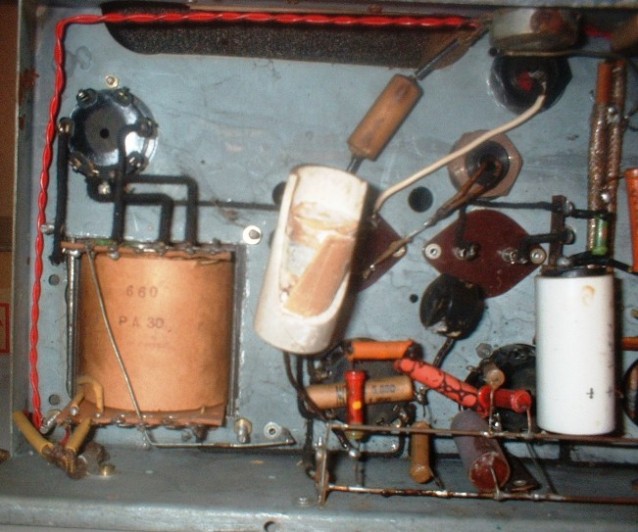 Was mich irritiert, ist die AM2. Die umgesockelte Röhre ist eine Stahlröhre, benötigt also 6,3 V Heizung. Auch kann ich mir für ein Gerät nach 1938 (und vmtl. vor 1939, da im 1939 in Montreux bereits wieder ein neuer Wellenplan vereinbart wurde) kaum mehr A-Röhren vorstellen.