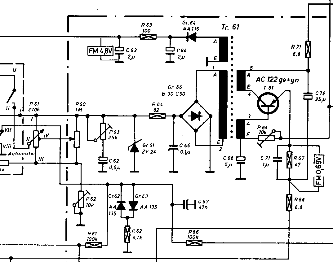 Vielen dank für eure Anteilnahme. Der einzige Kondensator an den ich herankäme ohne die Platine auszubauen scheint mir der C63 zu sein. Ansonsten ist die Platine so eingebaut, daß die Bauteile innen sind und damit unzugänglich. Aber ich nehme mir das Gerät jetzt noch mel in aller Ruhe zur Brust. Irgendwie muß es ja gehen. Es wurde mal zusammengebaut, also muß man es auch wieder auseinanderbauen können.