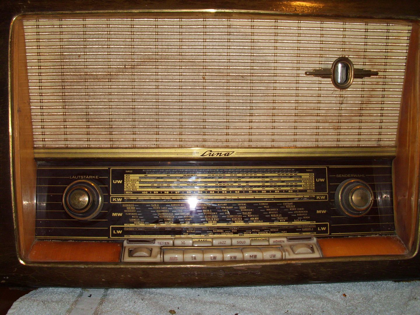 Hallo Gestern hab ich auf unserem Bauhof etwas Elektoschrott entsorgt. Als ich meinen Kram auf den Tisch stellte wo die Arbeiter den Krempel vorsortieren viel mein Blick zufällig in einen kleinen Container der daneben stand was sofortiges Herzrasen zur folge hatte. Den Verursacher seht ihr auf den Bildern. Ich durfte es mitnehmen und hab es daheim erst mal getrocknet und grob gereinigt. Das Stromkabel war mit Lüsterklemmen verlängert und sah Lebensgefährlich aus. Ich hab's auch wieder verlängert da ich keinen Stecker zur Hand hatte aber jetzt so das es vernünftig ist und nichts mehr passieren kann. Dann hab ich es eingesteckt und eingeschaltet. Und was soll ich sagen, es lief. Den Lautstärkeregler hab ich jetzt zwei mal behandelt und er ist fast Störungsfrei. Von den Tonreglern geht dir Anzeige nicht richtig mit und die Führungsschnur der die Skalenzeiger aud Abstand hält ist gerissen. Das war es eigentlich an Mängeln? auch schon. Ich werd es in der nächsten Zeit mal richtig reinigen und dabei die Schnur und die Regler gleich in ordnung bringen. Leider fehlt die Rückwand. Da werd ich mal beim Herrn stellmacher im Löwemuseum nachfragen. Ich bin guter Hoffnung das er was da hat und über eine Spende für seine Sammlung freut er sich bestimmt auch.