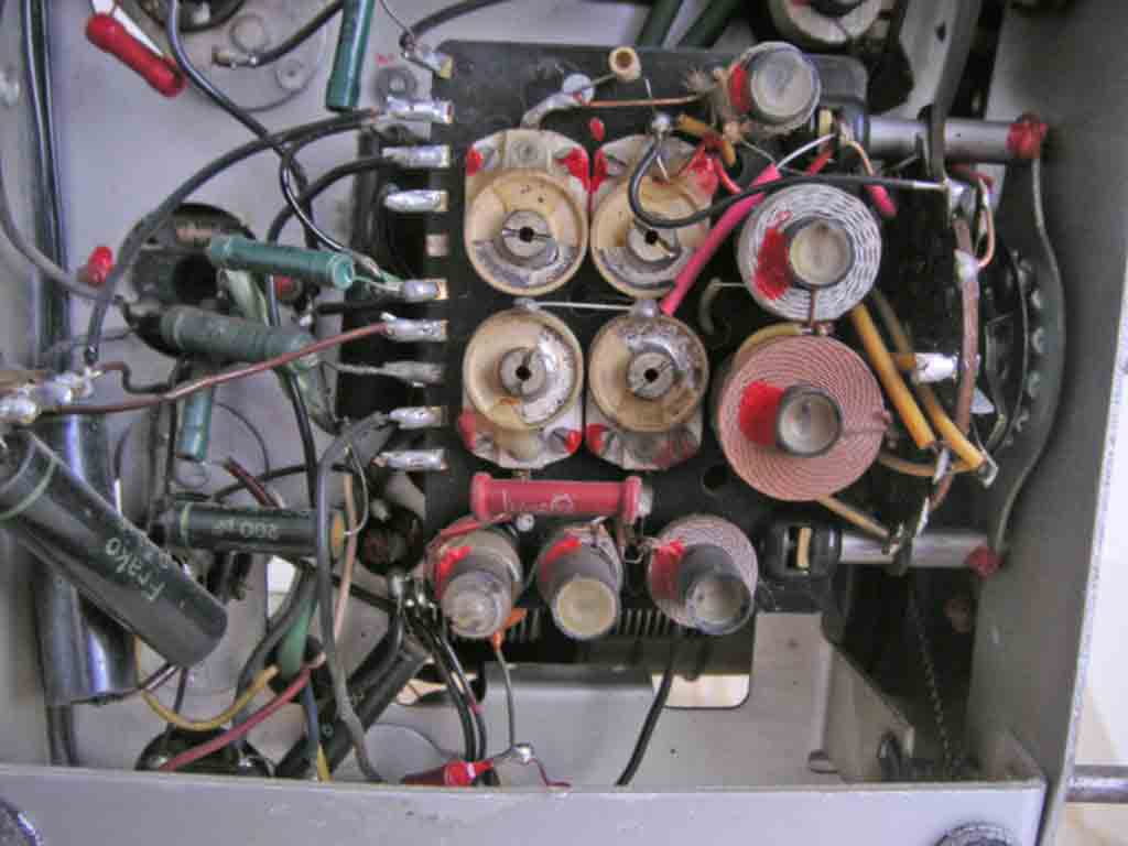Ich würde mich freuen, wenn jemand Hinweise zu diesem oder einem ähnlichen Radio mit gleicher Röhrenbestückung hätte, besonders UAF42 gefolgt von UM4 mit NF Verstärkung. Mit welcher Gleichspannung am NF-Ausgang (Diode) der UAF42 darf man normalerweise rechnen? Ich habe maximal - 10 Volt mit einem Messgerät mit 10MOhm Eingangswiderstand gemessen, es kommen bei der UM4 jedoch nur rund - 1,5 V an. Auch der Plan des Spulensatzes mit Wellenschalter wäre hilfreich. Einige Bilder habe ich beigefügt.