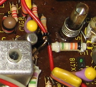 Auf der Bildmitte sieht man das Bauteil, das auch eine Diode sein könnte. Das Radio funktioniert übrigens nach meiner Reparatur einwandfrei. Ein Schaltbild habe ich nicht. Ich dachte erst, das Schwarze sei ein verkohlte Masse. Es ist aber wie Öl. Kann das ein Tantal-Elko sein? Diese sollen bei eine Defekt eine braune bis schwarze "Suppe" absondern.