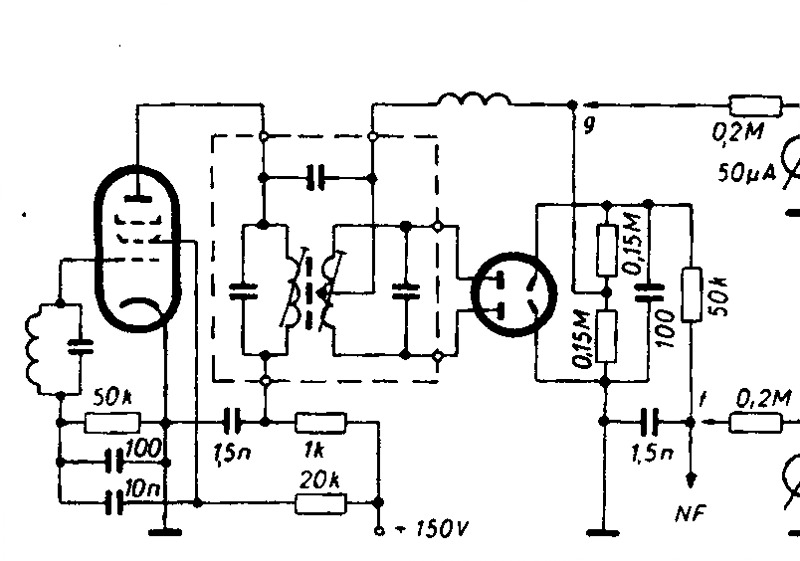Hab ein bisschen weitergearbeitet am Philips Saturn. Netzspannung auf 245 V gestellt. Die Anodenbetriebspannung stimmt nun, die Heizspannung hart an der - 5% Hürde. Die neuen Kondensatoren machen es möglich. EM34 fast völlig verbraucht. Auf UKW das Gerät so gut wie möglich abgeglichen, es ist für seine Baujahr gut auf UKW. Die Schwierigkeit war max. Empfindlichkeit und minimale Verzerrungen hinzubekommen. Der Diskriminator ist ein Phasendiskriminator wobei ich mir nicht sicher bin ob dort eine Schaltung mit Begrenzerdiode, es wäre die linke Diode der EBF80 die als solche verwendet wird ist. Die Begrenzung könnte auch bei der zweiten EF 42 die als FM-ZF Verstärker dient mit verwirklicht sein. MW und KW O.K. soweit LW etwas schwach, aber auch nur ein kurze Antenne von 1,50 m verwendet Der Rest sind Arbeiten am Gehäuse und noch ein paar Kleinigkeiten. Ach so, bei dem Lehrbuchscan ist die Begrenzerdiode nicht dabei, es gibt auch Schaltungen ohne.