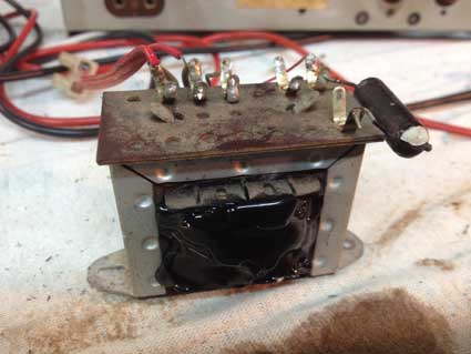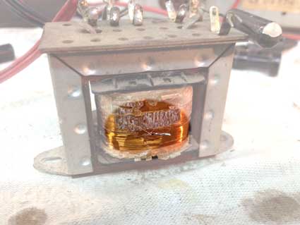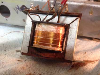 Nächster Teil: Durchgebrannter Ausgangsübertrager Übertrager ausgebaut und durchgemessen. Durchgang vom Endstufenanoden zur Anzapfung zwar aber kein Durchgang mehr der Primärspule von Anzapfung zu ihrem Ende.