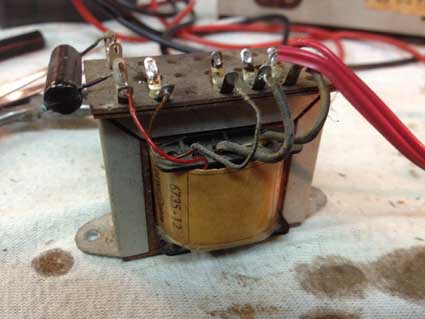 Da hier unmittelbar hinter dem Übertrager angeschlossen eine Hälfte des 50uF Doppelekos werkelte, diesen abgeschlossen und dort auch Leitung offen gelassen.