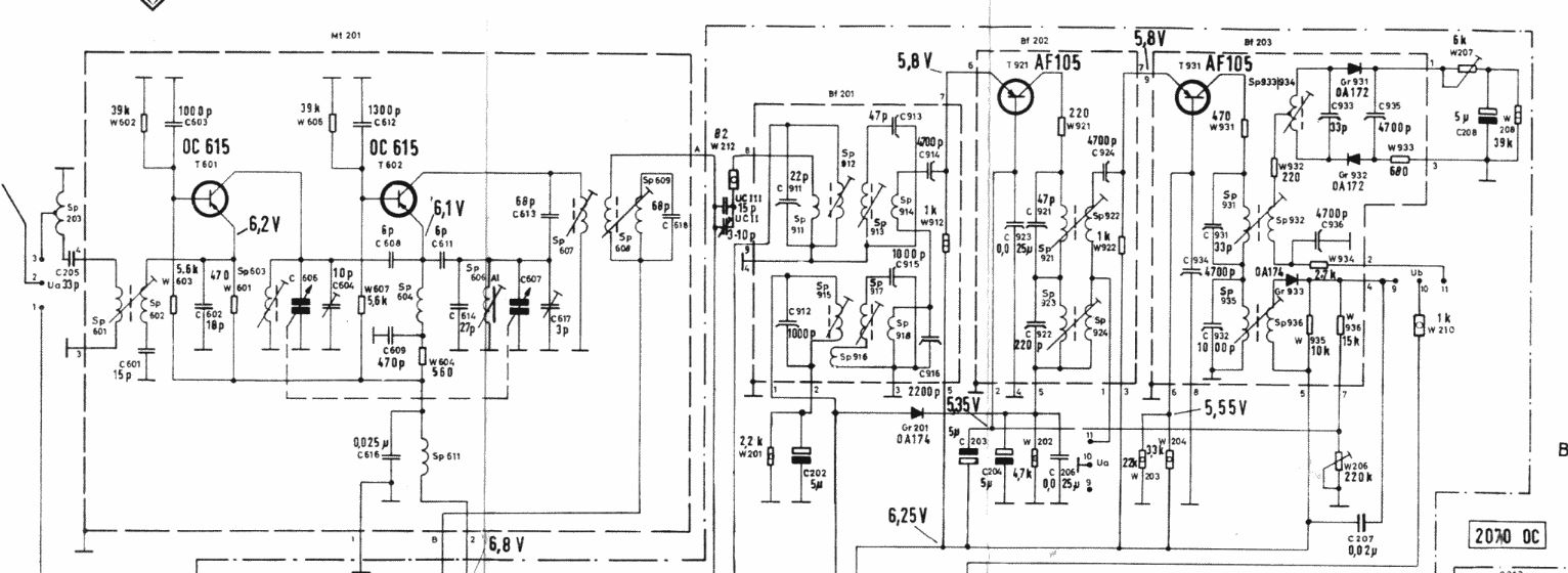 Nun kann ich leider das Schaltbild noch nicht hinreichend gut interpretieren, um gezielt an den richtigen Stellen zu drehen, z.B. welches ist die Oszillatorspule? Und wenn ich irgendwo auf gut Glück rumdrehe sind am Ende wir alle drei völlig verstimmt - das Radio, Du und ich. Oder: wenn ich das Radio völlig vertrimmt habe, gehöre ich vertrimmt.