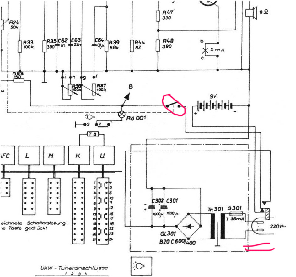 ich habe gestern ein altes Stern Radio geschenkt bekommen, das möchte ich reparieren. Das Gerät ist verbastelt, der Netzschalter (das Gerät hat 2 getrennte Ein/Aus-Schalter) ist defekt. Hier das Schaltbild.