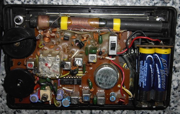 dasselbe Radio habe ich auch. War das Radio lange Zeit nicht im Einsatz? Ich vermute mindestens einen der vier Elkos, die ich auf dem Foto erkennen kann. Vor dem Austauschen würde ich das Radio an ein Netzteil anschließen und viele Stunden laufen lassen, damit sich die Elkos eventuell wieder formieren können. Außerdem würde ich kontrollieren, ob der Oszillator schwingt. Handempfindlichkeit, also ein Wegdriften der Frequenz, spricht auch für ein Oszillatorproblem. Ein starkes Rauschen kann auch für einen defekten Transistor sprechen. Dieser kann mit Kältespray gefunden werden. Bin mal gespannt, was es ist.