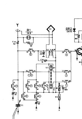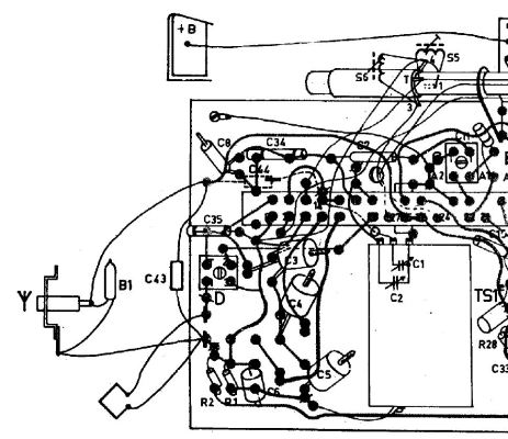 Die Antennenbuchse und die interne Rahmenantenne sind anders angeschlossen, als in den Unterlagen dargestellt. Außerdem fehlen C43 und B1. Es ist offensichtlich, daß in diesem Bereich nachträglich gelötet wurde. Die Anschlüsse der Spulen auf dem Ferritstab scheinen mir unverändert zu sein.
