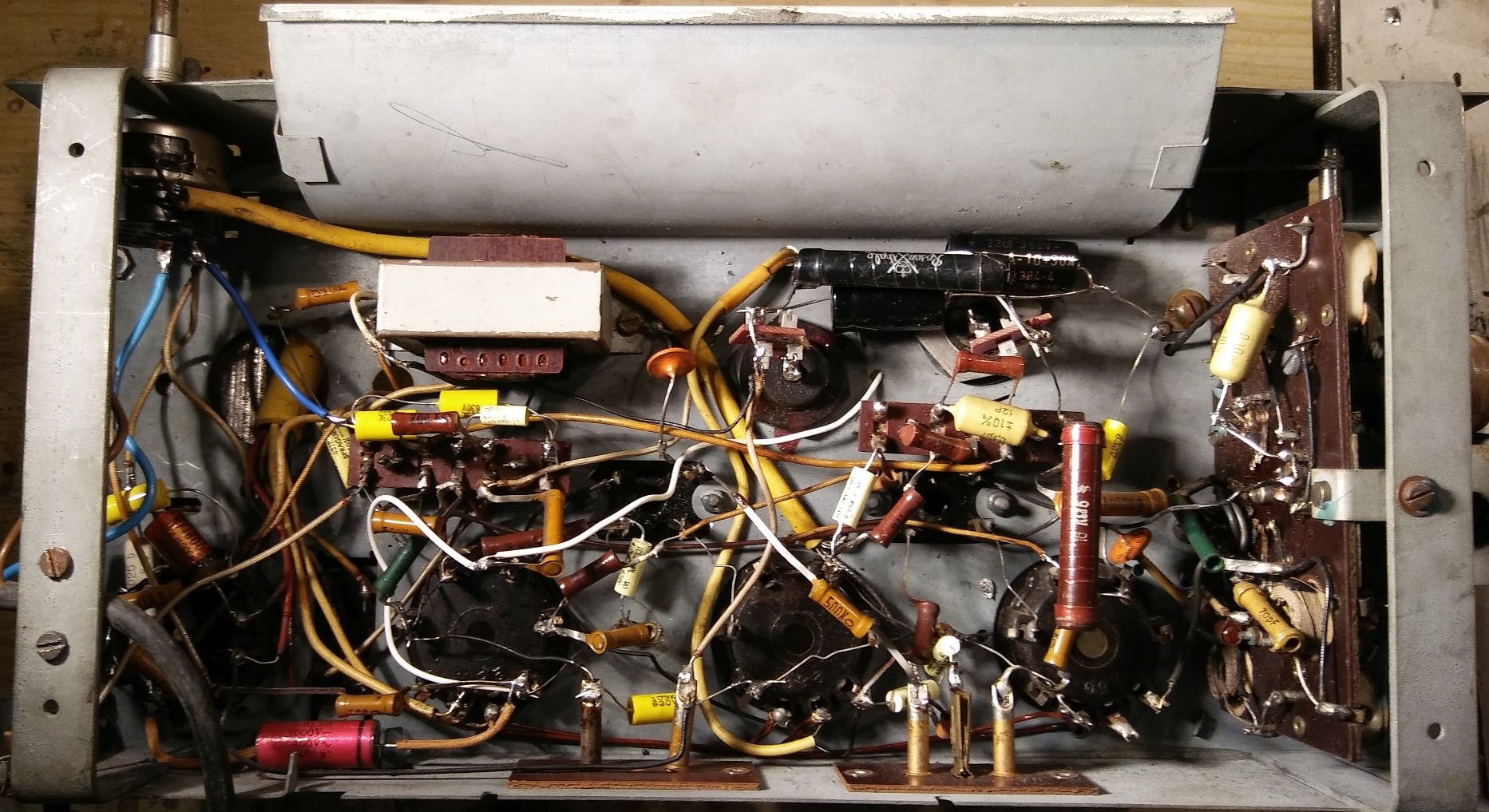 Nachtrag: Böses Faul: Die Minuspole der 32 und 25µF Elkos waren gegenüber Chassis isoliert montiert, was ich zuerst nicht gesehen habe. Das hatte den Effekt, dass die neuen Elkos zunächst deutlich mehr "brummten" als die alten.
