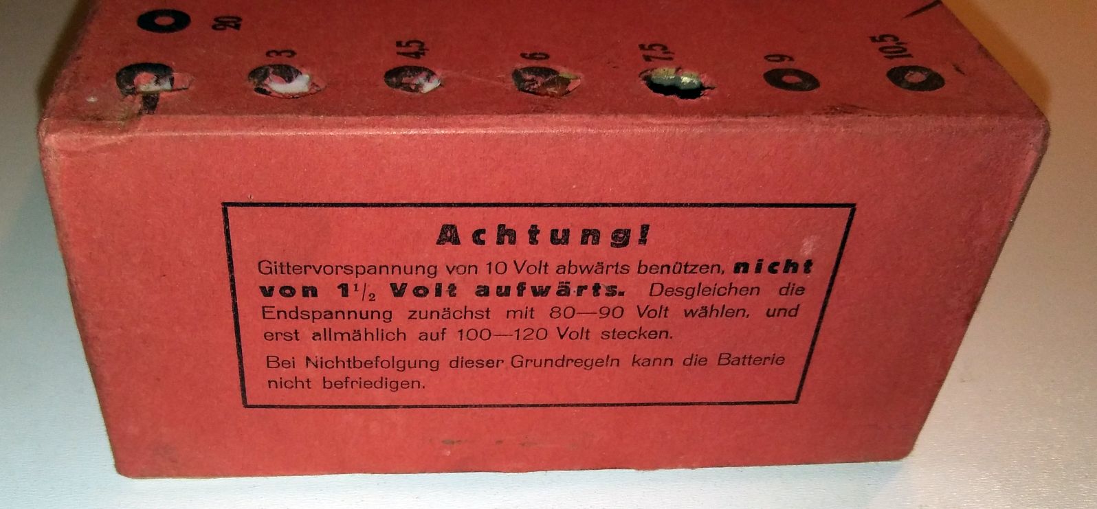 Batteriespannungen: Heizbatterie 2 Volt, Anodenbatterie 120 Volt