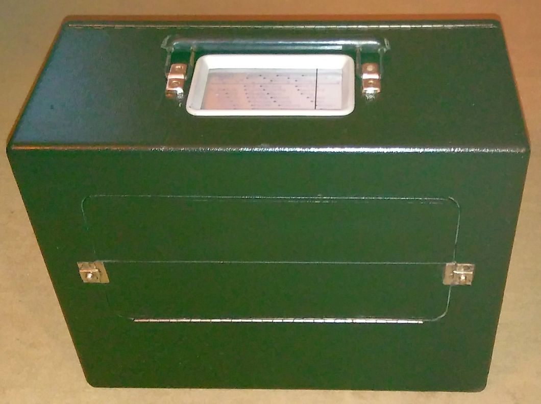 Die Abdeckung der urspünglichen Anodenbatterie "EAG Perplex" konnte ich weiter verwenden. Eine zurechtgezimmerte Sperrholzbox beherbergt nun 24 Flachbatterien a 4,5V. Die sind im Instustrie-Zehnerpack gar nicht mal so teuer. Im Neuzustand ergeben sich knapp 120V, und nach Erreichen der Entladeschluss-Spannung dürfte die Spannung kaum unter 100 Volt fallen. Während die Anodenbatterie mit der Kapazität von 6Ah das Original übertreffen dürfte, ist der Heizakku mit 10 Ah nur knapp halb so gross und müsste nach 12 Stunden nachgeladen werden. Das ist aber kein Problem, denn so häufig wird das Gerät nicht laufen, obwohl es aufgrund der beiden Rahmenantennen und dem wohlklingenden Lautsprecher schon saugut spielt, und die Empfindlichkeit nur selten die Aussenantenne erfordert.