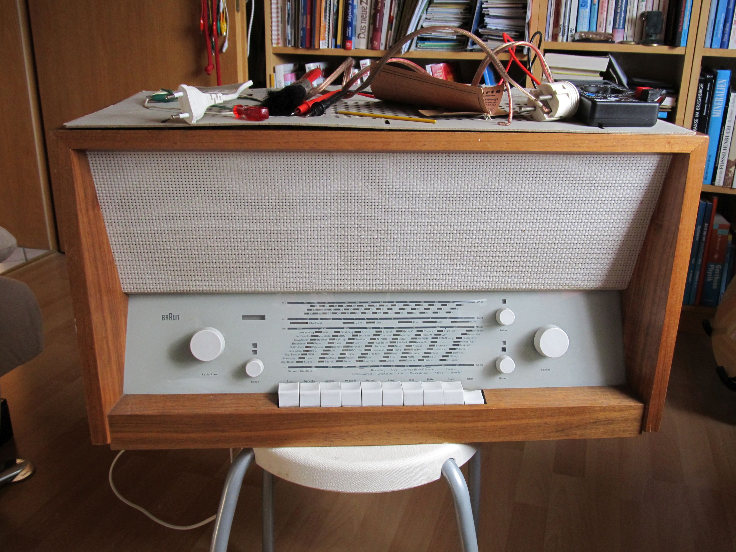 Ja genau, die beiden meine ich, sind das. HF aus dem Heizkreis halten. Klar, jetzt wo du es sagst, was sollen die sonst tun. Und ja, da wird es auf nen kleinen Teil eines Henrys nicht ankommen. Ich glaube ich besorg mir Montag einen Draht in der Stärke, und wickel mir die Teile so in der Art nach. Und die Röhren werde ich mir auch noch mal etwas genauer ansehen. Na dann hab ich doch schon mal eine Plan. Mir ist das Radio jetzt schon ans Herz gewachsen. Und ich mag das Design. Es ist BJ 61. Aber es sieht nicht unbedingt so aus wie früher das Radio vom Opa. Mit dem Teil schone Musik hören, und die Gedanken abschweifen lassen, das ist schon was schönes.