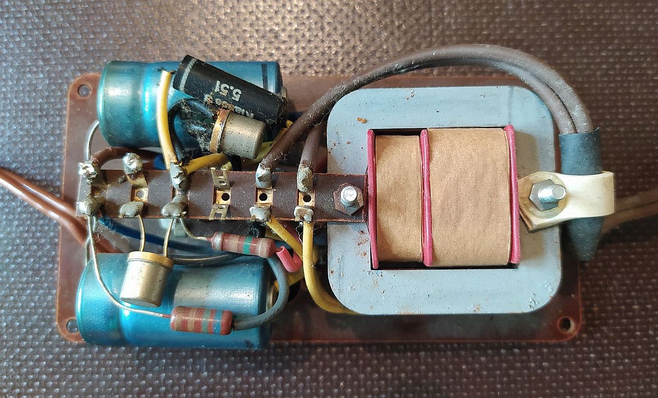 gestern habe ich ein (relativ) altes Kofferradio, inklusive eines alten Netzteils, geschenkt bekommen. Im Netzteil waren die zwei (1000uF) Elkos ausgelaufen. Nach dem Austausch lief das Netzteil wieder. Die zwei (unbeschrifteten) Gleichrichter sehen aus wie Transistoren in einem TO5-ähnlichen Gehäuse, wobei bei dem Einen nur zwei von drei Anschlüssen verwendet werden. Vermutlich handelt es sich um Doppeldioden.
