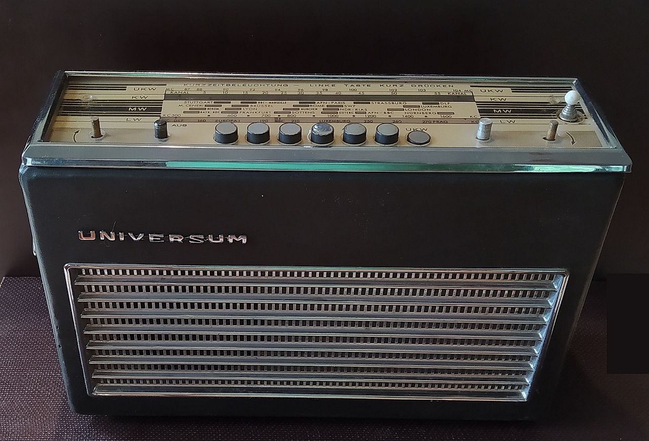Beim Radio hört man nur den 'Anschaltknacks' und die beiden Endstufentransistoren (2 x AC117) werden heiss. Vermutlich ist der Leerlaufstrom zu hoch eingestellt. Ein Schaltplan wäre hier notwendig, aber leider kann ich an und in dem Gerät keine Typenbezeichnung finden. Am Gehäuse steht nur 'UNIVERSUM'. Kennt vielleicht jemand von Euch dieses Gerät?