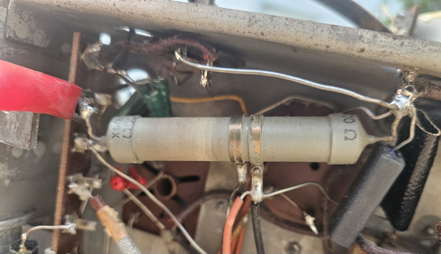 „Die Geschichte mit dem Anodenspannungs-Teilerwiderstand hat mir doch keine Ruhe gelassen. Ich hatte ja festgestellt, dass der bei mir eingebaute Widerstand nur 2 Abgriffschellen hat, im Schaltbild aber 3 Abgriffe eingezeichnet waren. Diese Beobachtung hatte auch Detlef (Radionar) bestätigt.