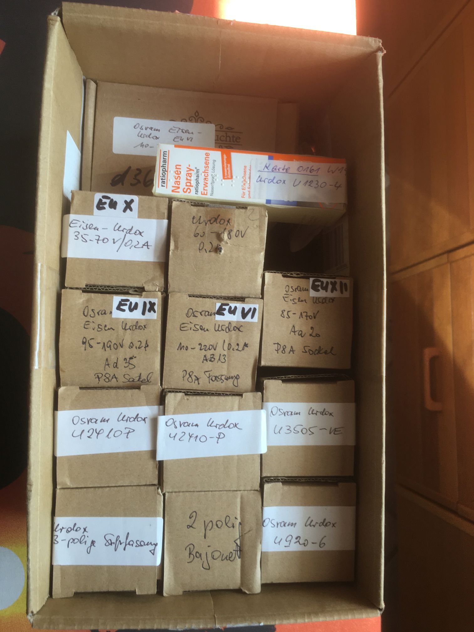 ja, soweit erkennbar, sind das alles 200-mA-Eisen-Wasserstoff-Urdox-Widerstände. Sie wurden im Serienheizkreis von C-Röhren (If = 0,2 A) eingesetzt und bestehen aus der Reihenschaltung eines NTC-Widerstands aus Urandioxid (daher Urdox) zum langsamen Hochfahren des Heizstroms (Schutz der kalten Heizfäden und besonders der Skalenlampen vor dem Einschaltstrom) sowie einem Eisen-Wasserstoff-Widerstand zur Stromstabilisierung im stationären Zustand. Passen leider nicht als Vorschaltwiderstand für meinen Glimmstabi STV 280/40. Aber vielen Dank fürs Suchen - toll, was bei uns Oldtimern noch so herumliegt! Vielleicht kommen ja noch Meldungen aus anderen Schatztruhen ...