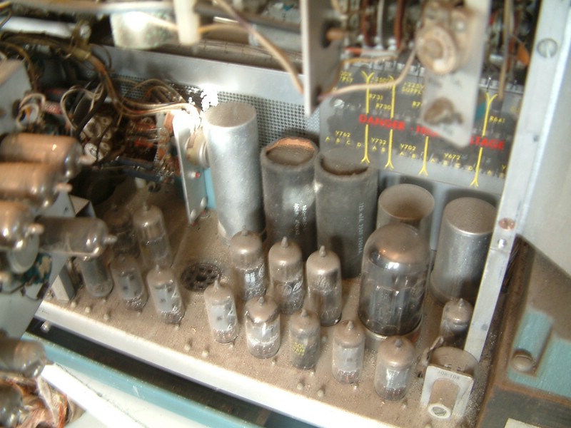 Medzin: Radikal-Kur Netztrafo checken, wegen starke Rostbefall HV Trafo in Wachs kochen 585 entkernen und mit Duschschampoo und Duschbrause fluten lasse (nicht mir hauen!!) In Ofen schieben und stundenlang mit 50-60° trocknen lassen. zusammenbauen und bestücken. Dann Fehlersuchen: 2x elko, 2x Widerstand und eine Selbstmörder aus Germanium erneuern, ebenso HV Trafo (ist durch luftgezogene 6AU5 gekillt, da habe ich umsonst nihm gekocht )