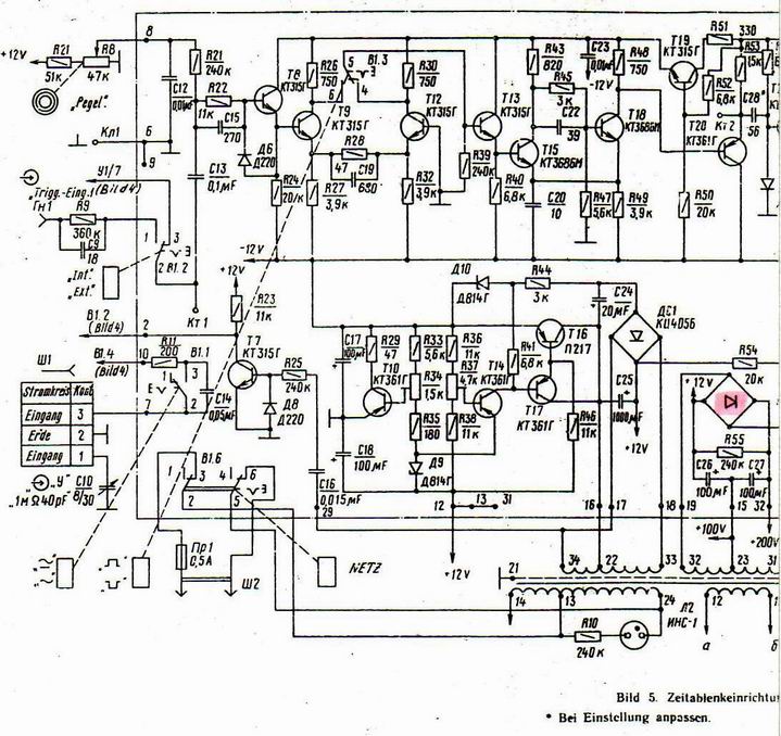 Jetzt habe ich ein Bild des Gerätes mit einer BNC-Buchse gesehen, an der ich dann moderne Spitzen anschließen könnte. Auf einer russischen Seite habe ich mir den Plan herunter geladen.