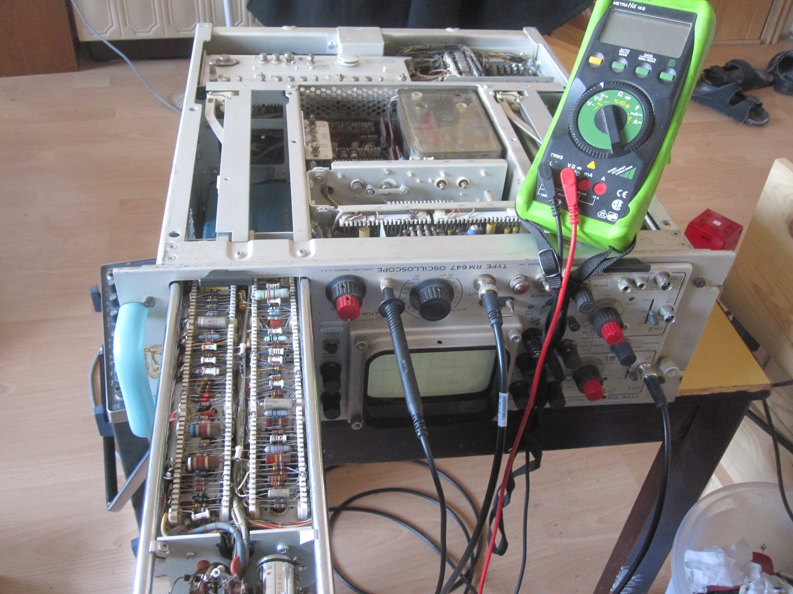 Baby-Rassel-Lüfter   Schrottcontainer   Quarzstabilisierte   Kalibrationsspannung   Horzontial-System   Frequenzabweichung   Helligkeitspoti   General-Electric   bearbeitet   selbstverschändlich   Timebasis-Verlängerung   Quasi-Vorgänger   Calbrationsspannung   Quarzstabilisterte   Fehlertoleranz   Luxus-Tektronix   Vertikal-System   Triggerproblem-   HV-Gleichrichter   Umgebungstemperatur