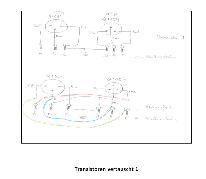Hallo Martin, Hier die Zusammenfassung meiner Messungen und Versuche an den 12 Transistoren wie von Dir am 22.10.2016 vorgeschlagen. Messgeräte: 1.1 Oszi: Gould-Advance OS25A 1.2 Atlas DCA model DCA55 Semiconductor component analyser 1.3 Digital Multimeter DÜWi 07977 1.4 Analog Multimeter Voltcraft VC-5080