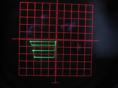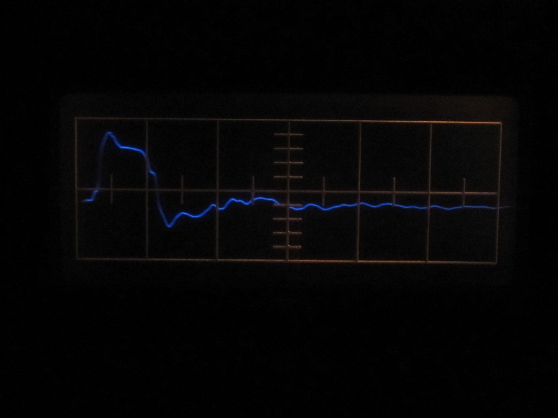 (Horz: 10ns/DIV, Vert: 8,7V) man bemerkt starke Reflexion (Kabeln war nur einfache Zwillinglitze)