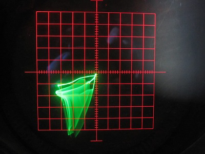 Nochmals zurück zum 519 Wie ich schon geschrieben dass Triggerverstärker nicht richtig geht. Testen von Transistor in Tektronix 575 staunt ich nicht schlecht: oszillation von eine kaputte Transistor