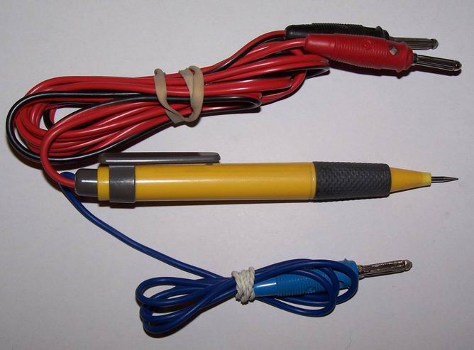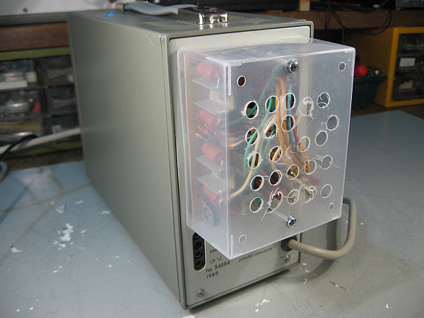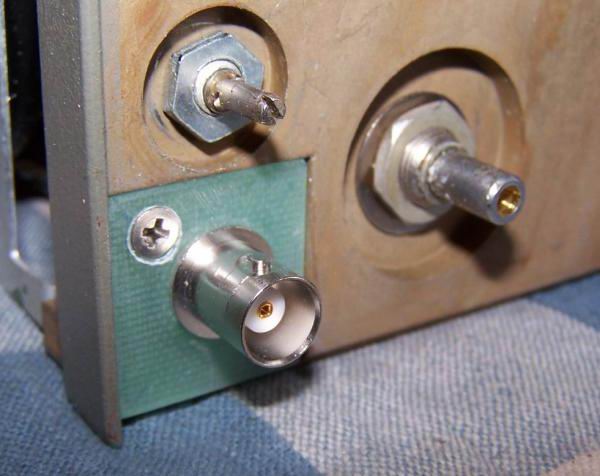 Dies hier war meines, ich hatte die fünfpolige Buchse gegen eine BNC ausgewechselt und konnte dann "neumodische" Prüfspitzen benutzen. Den Trimmkondensator habe ich entfernt, er ist ja zum Abgleich in der neuen Spitze enthalten.