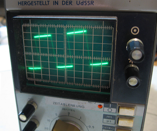 na,das wird doch! Wenn Du dann die Bildröhre noch etwas drehst, dann hast Du wieder eine gute Anzeige. Ich hatte zwei Stück davon, habe sie aber zwischenzeitlich verkauft. Jetzt habe ich nur noch einen Hameg HM307 mit Komponententester, der reicht mir.
