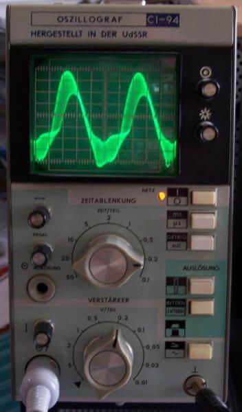 Die obere Grenzfrequenz liegt bei etwa 12 bis 13 MHz. Bis 25 triggert er noch stabil. Dreht man die Helligkeit voll auf, wird das Schirmbild größer, weil die Hochspannung kleiner wird. Jedenfalls ist das bei meinem Exemplar so. Wenn man das aber weiß, ist das kein Problem. Ansonsten kann man damit für Reperaturarbeiten ganz brauchbar arbeiten. Frequenzen und Spannungen lassen sich damit abschätzen.