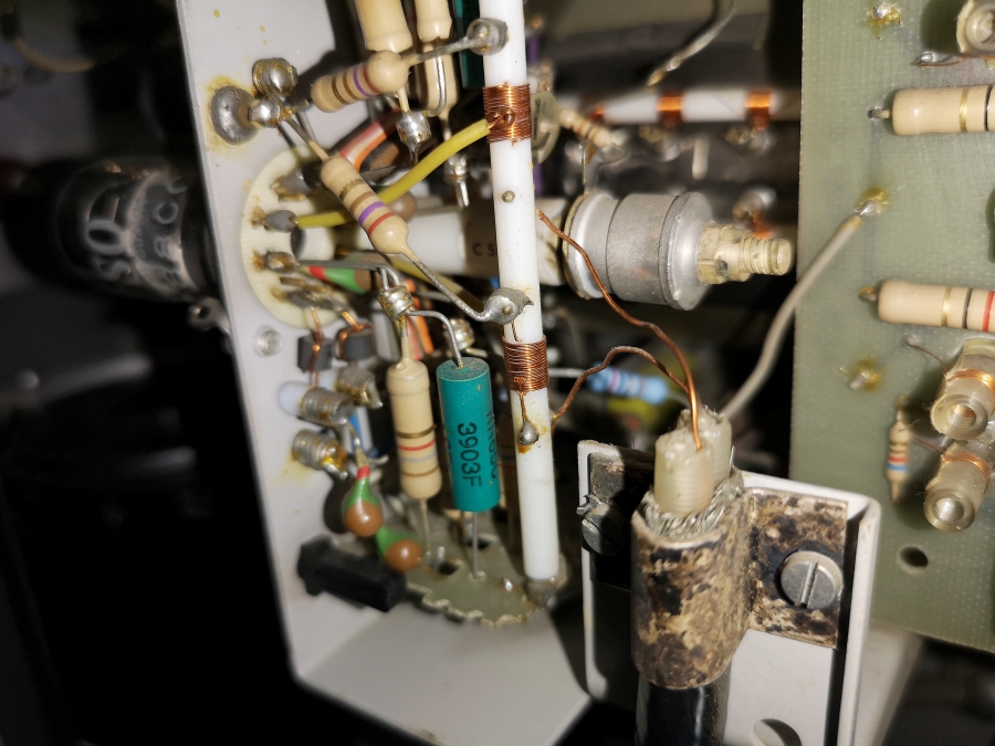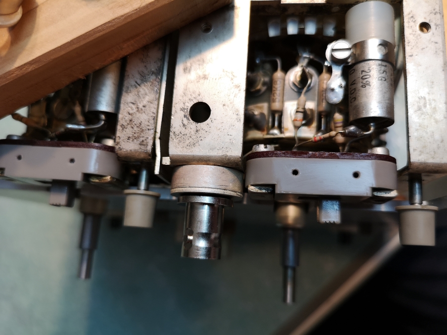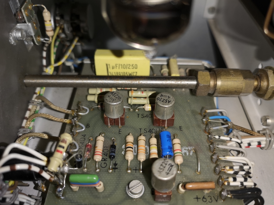 In diesen Jahren sind ja auch oft Transistoren in den Zinngehäusen verbaut wie auch hier der ASZ20 und AF118, aber stichprobenartig einige geprüft - kein Whisker (Zinnhaarnadeln) die im Inneren wachsen und Kurzschlüsse verursachen im Transistor! Berühmt berüchtigt ist da das Modell AF118. Das gibt es in diesem großen Gehäuse wie auch in dem späteren aus anfang der 1970er Jahren modernen kleinen umproblematischen Gehäuse. Verbaut z. b. in dem PM 3233/34 mit der schwarzen Frontplatte.
