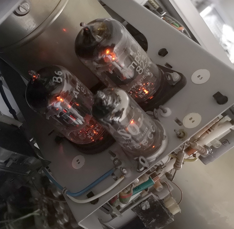 Was hab ich getauscht? Die kleinen Elkos, hauptsächlich Netzteilplatten und querbeet im Gerät. Ein Widerling 180 Ohm an der Schirmgitterspannungszuführung der beiden E55L war auch durchgebrannt. Aber nichts ungewöhnliches wieder passiert bisher. Die E55L / 8322 haben auch keinen Gitterschluss warm oder so im Betrieb. Durchgebrannte Glühlampen der Rasterbeleuchtung wenn sie den kürzer wären