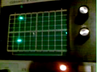 Ob mit Tastkopf, mit sinus, rechteck oder sägezahn: 2 blinkende Punkte in horizontaler Position oder ohne Tastkopf: 2 blinkende Punkte in horizontaler Position