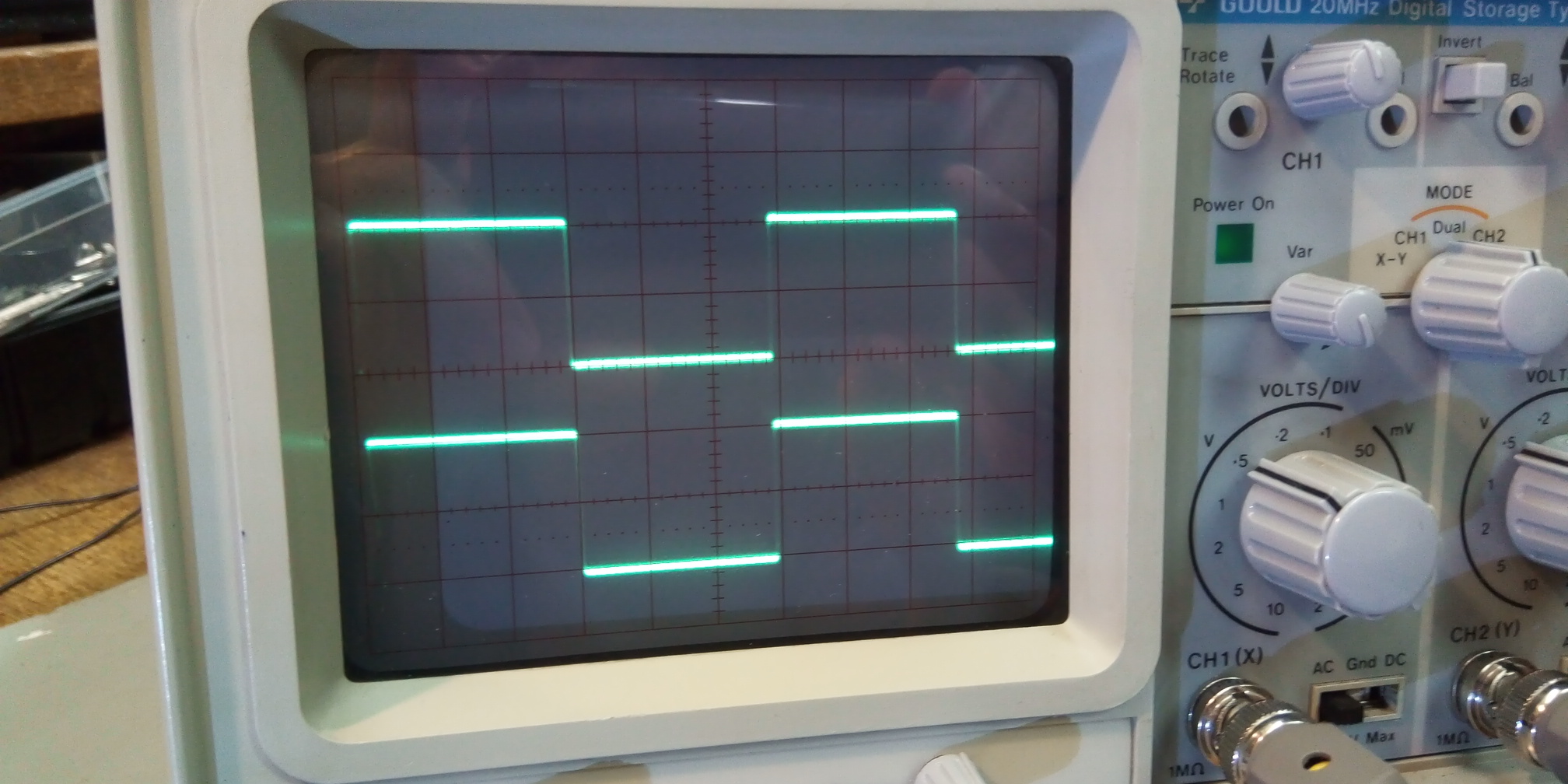 Das Oszilloskop kam am Donnerstag mit der Post an. Beim Einschalten zeigte sich, dass der Strahl der Kathodenstrahlröhre nicht unterbrochen wurde, wie er es sollte, was zu einem Durcheinander von Linien auf dem Bildschirm führte.