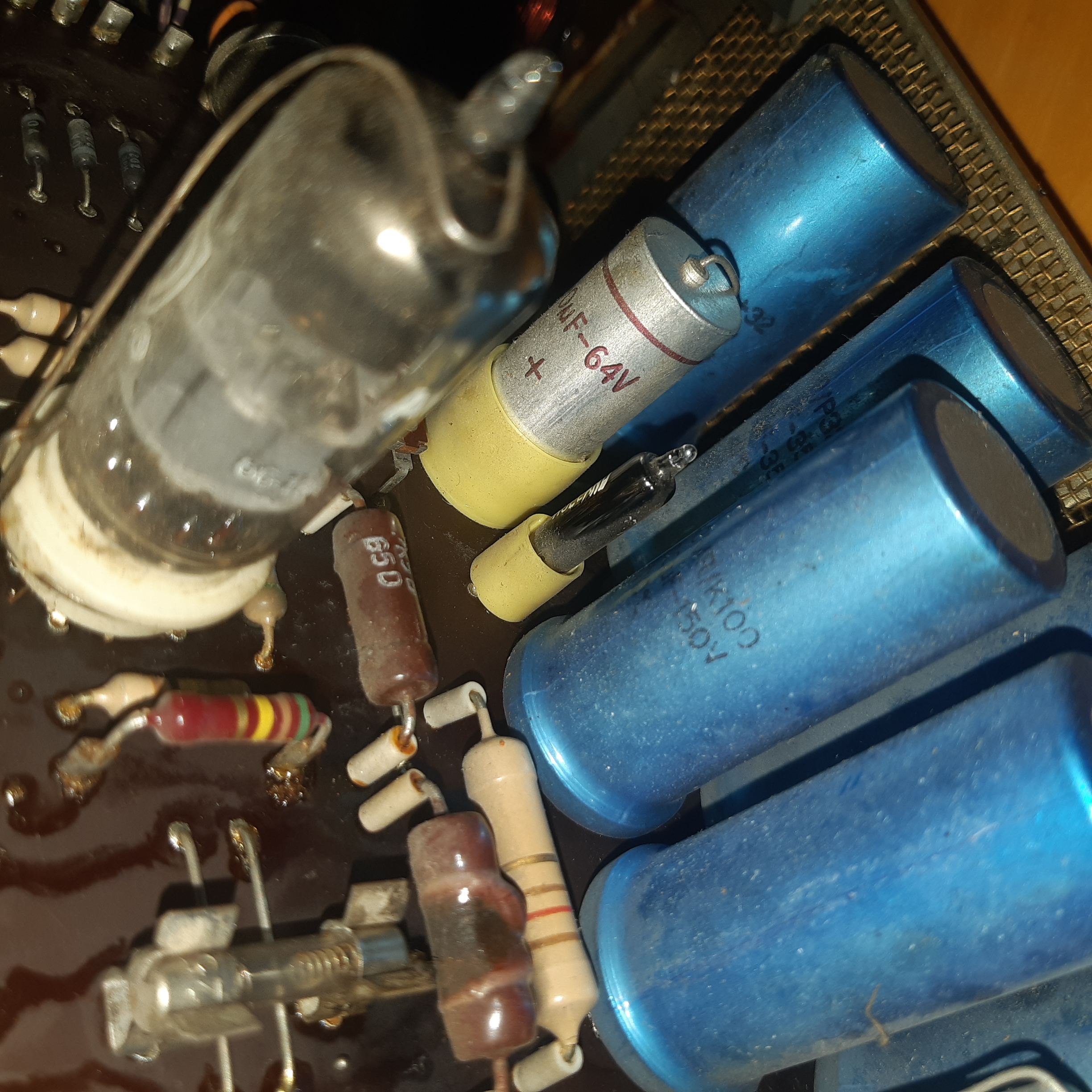 I also noticed this neon bulb that isn't working properly. I tried gently pulling and it wouldn't come out. Are these plastic sleeves sockets, like for tubes, or do I need to desolder it? I have never seen them before...