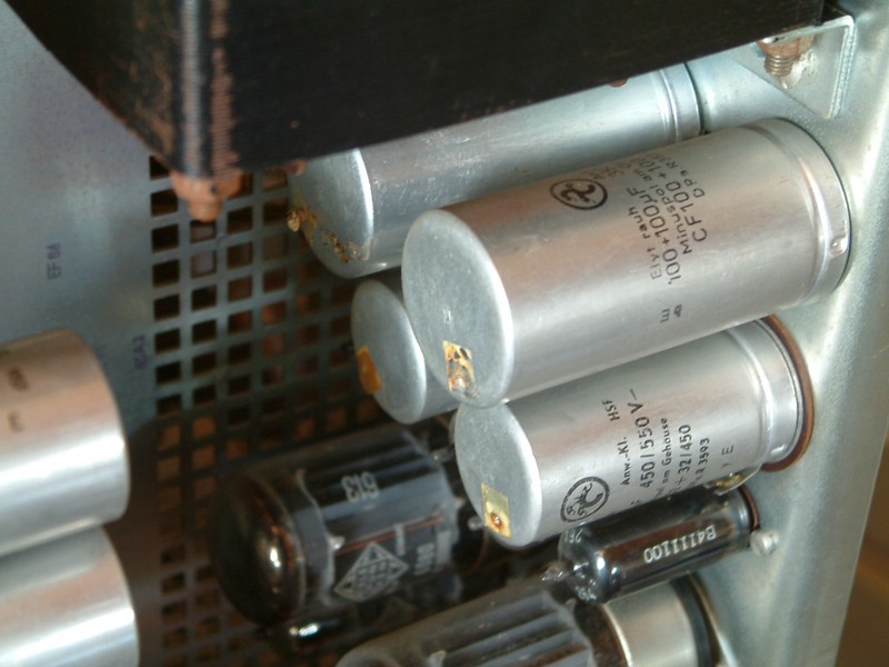 Ein schönes und wuchtiges Sammlerstück dieser "Knott". Würde auch Deiner Sammlung sicher gut stehen. Was mir bei den schönen Fotos auffiel, waren die Elkobecher, aus denen offensichtlich bereits Eloktrolyt ausgetreten zu sein scheint. Ob die noch echt "astrein" sind, lässt mich zweifeln. Bei Dir ist das "Pflegekind" in den denkbar besten Händen. 50-60 Kilo, da ist an ein Umkippen des Gerätes wohl nicht zu denken. Toller "Oszi", ein technisch und optisch wertvolles Stück. Da kann man Dir nur gratulieren. Viel Spass und Erfolg bei der Restaurierung.