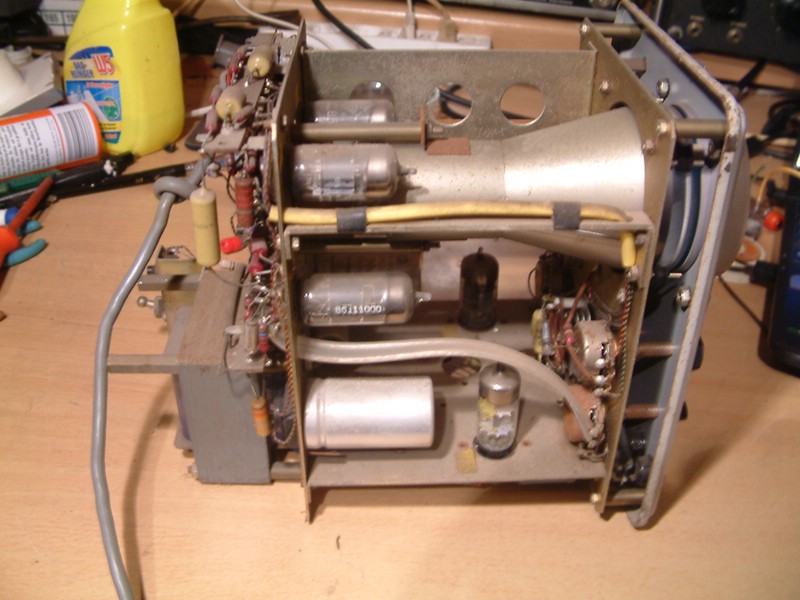 der 4µF 550V war hinüber, eine EZ80 war durch 2 Dioden ersetzt, neue EZ80 drin, Dioden raus. am Intens + Kontrastpoti waren andere Widerstände verbaut, Spannungen stimmen wieder alle, 1x Abgleich