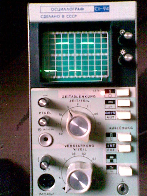 FET gewechselt. Wieder einen waagerechten Strahl!! Aber immer noch das vertikale (Ge-)Rippel. Habe die beiden 160V-Elkos noch nicht ausgetauscht. Das Bild flimmert, deshalb ist nicht das komplette Rechteck zu sehen!