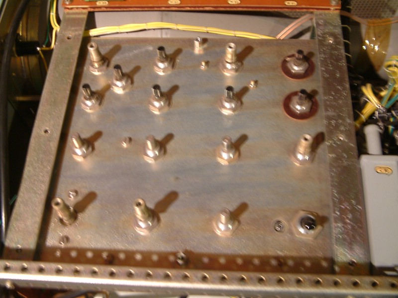 Dann läßt sich die Frontplatte demontieren und man kommt an die Mutter des Netzschalters. Selbstverständlich sind die vier Drähte kurz genug, so daß er sich auch dann nicht herausnehmen läßt ohne die abzulöten...