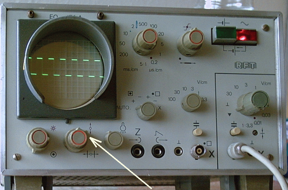 gestern habe ich mein DDR-Oszi bekommen. Nach dem ersten Check machte es Technischen einen recht guten eindruck. Wen ich es anschalte, habe ich einen dicken strick auf dem Monitor der von oben nach unten geht. Ist das normal oder muss ein Punkt in der mitte sein? Gibt es auch eine Möglichkeit das Gerät ohne Taster zu testen?