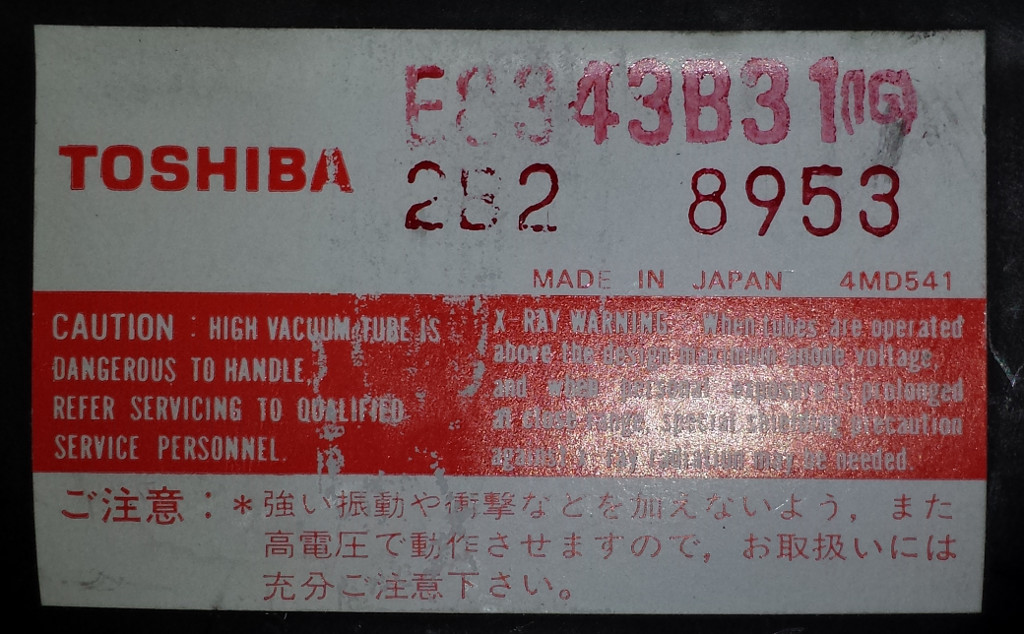 Dummerweise sind Unterlagen für solche Exoten fast nicht zu bekommen. Ich dachte, wenn ich den Typ identifizieren könnte, würde ich über die Röhre etwas finden können. Fragt sich nur, was ist die Typbezeichnung? toshiba E8343B31 oder toshiba 2B2 oder toshiba 2B2 8953