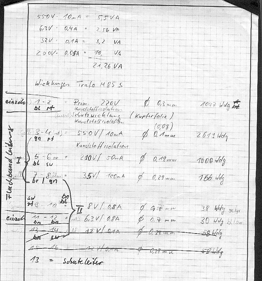 Das Oszi habe ich mit mehreren Trafos in Betrieb genommen, die Ströme gemessen und einen Ersatztafo berechnet.