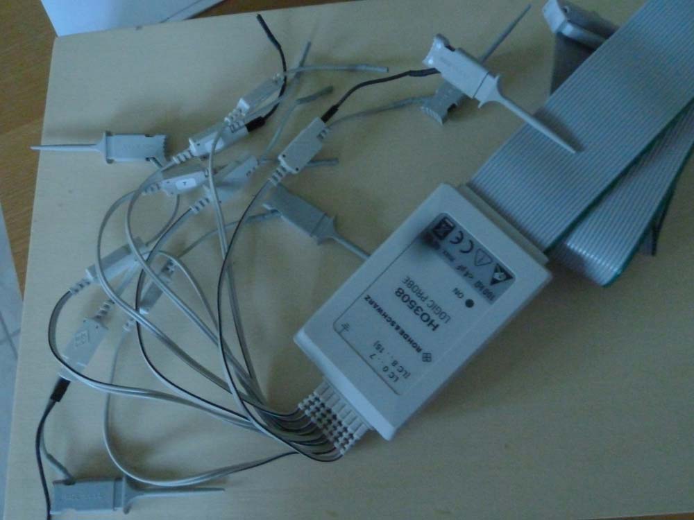 Pro Sonde kann die Schaltschwelle eingestellt werden, so dass alle Logikfamilien unterstützt werden. Die "Krokodilklemmen" sind so fein, dass man auch die Pins von SMD-ICs mit 1.27mm-Raster kontaktieren kann.