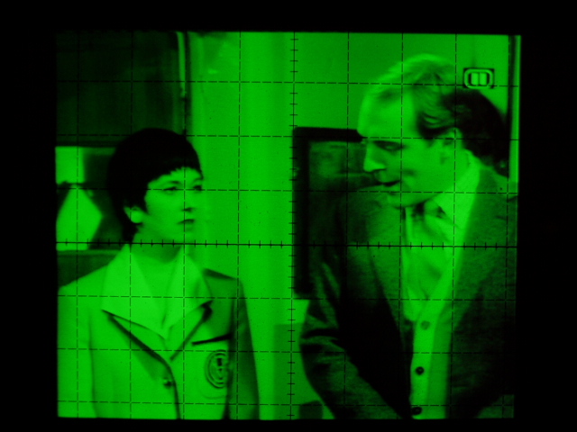 Die Horizontalablenkung übernimmt dabei die normale Zeitbasis mit TV-Zeilentriggerung, während die Vertikalablenkung von einem externen 50Hz-Sägezahn gemacht wird, der idealerweise mit dem Bildsynchronimpuls synchronisiert wird, es geht aber auch mit 'händischer' Feineinstellung. Da der Z-Eingang invertiert ist (höhere Spannung = dunklerer Strahl), musste ich noch einen 1-Transistor-Video-Inverter zusammenstecken, der auch noch um den Faktor 3 verstärkte, um mehr Kontrast zu erhalten.