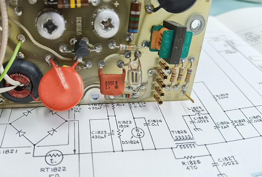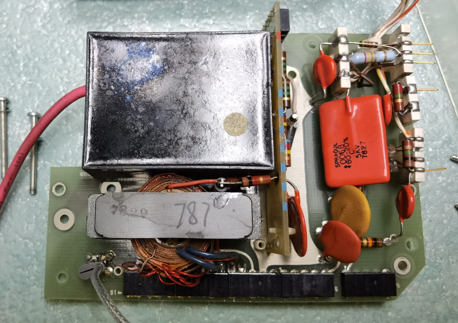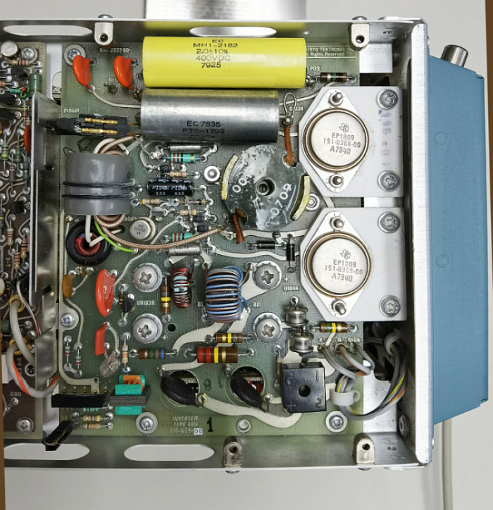Was mir noch aufgefallen ist. Tek benutzt hier schon so einen großen flachen AC Eingangs-C. Oberhalb sind zwei kleine C backsteinförmig zu sehen. Sehen ja aus wie moderne heutige SMD Kondensatoren. Erstaunlich das es solche Bauteile 1972 schon gab?