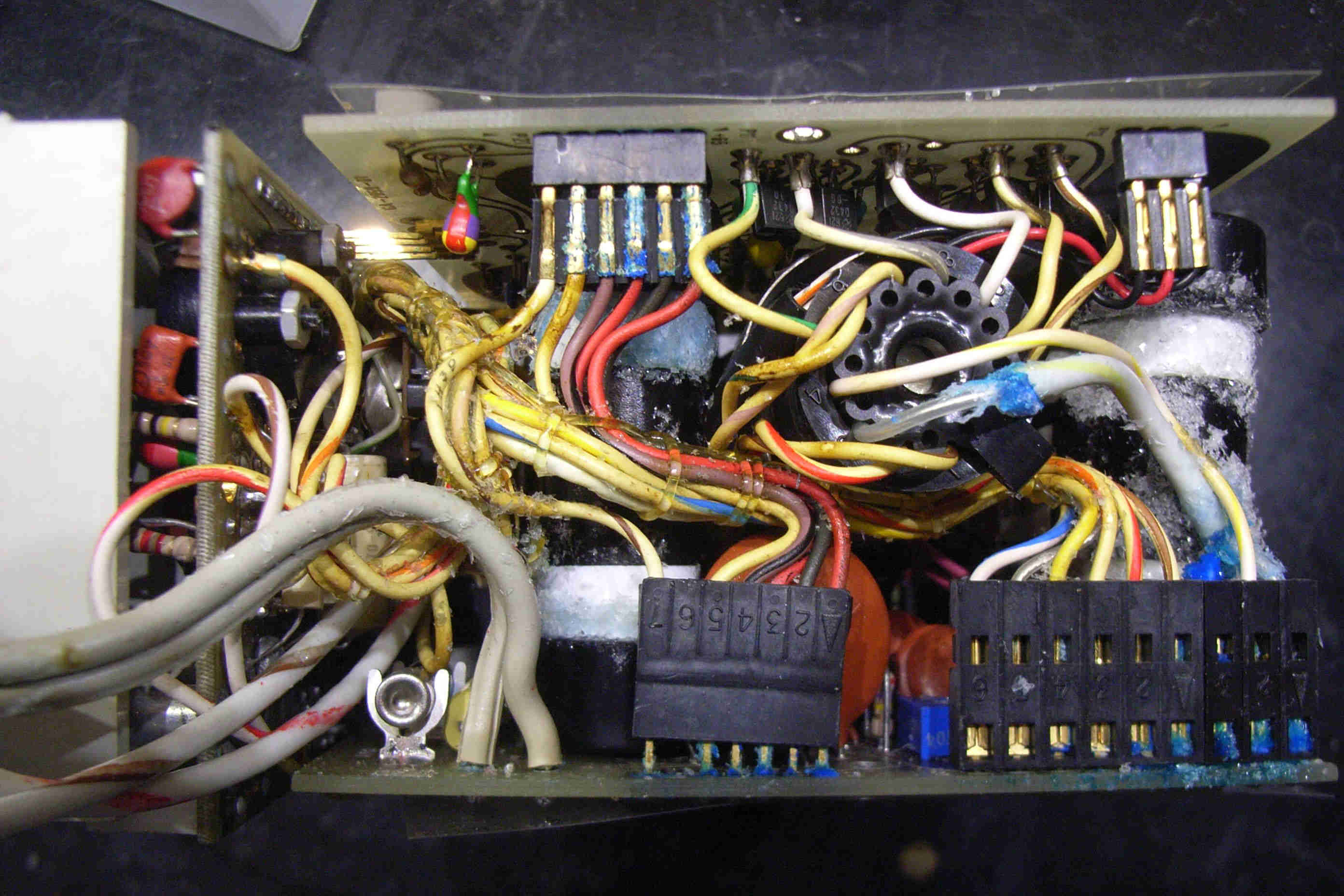 Mittlerweile habe ich alles wieder gereinigt, nur einen Teil der Buchsenleisten und Kontakte mußte ich erneuern. Sieht so wieder recht ordentlich aus und wartet auf das erste Einschalten.