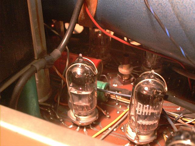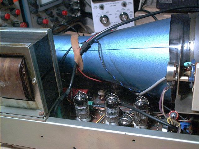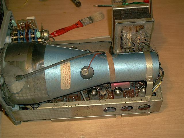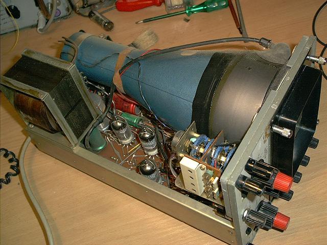 , aus England. Er werkelt mit 6 Stück ECC88 und einer ECF. Ein hübscher kleiner alter Ein-Kanal-Oskar. Das ist ein typisches Gerät daß zum reparieren alter Radios gebaut wurde.