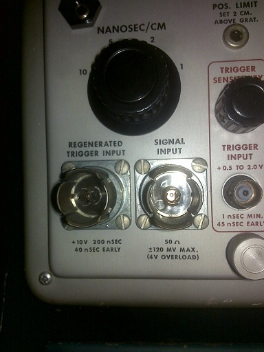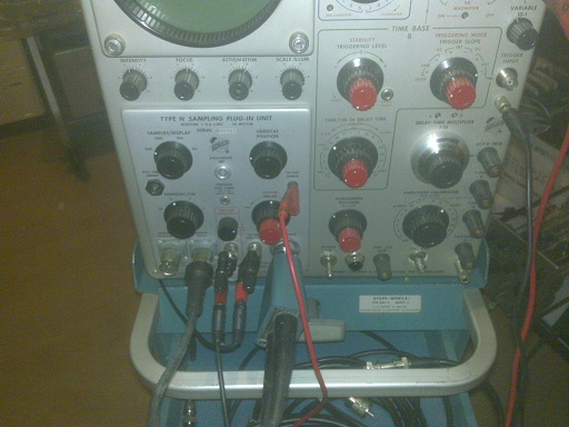 Aber Nachteil solle ich nicht schweigen. damit kann man nur peroidische Signal messen, komplizierte Signal kann Sampler schon recht schlecht darstellen. Bedienung ist da auch nicht einfach. Plugin N ist einer erste Sampler von Tektronix. Triggersignal soll zu messende Signal synchron und nie mehr als 50 Mhz beträgen, während messende Signal mehre hundert Mhz beträgt. Signalquelle dient bei mir R&S NO3030