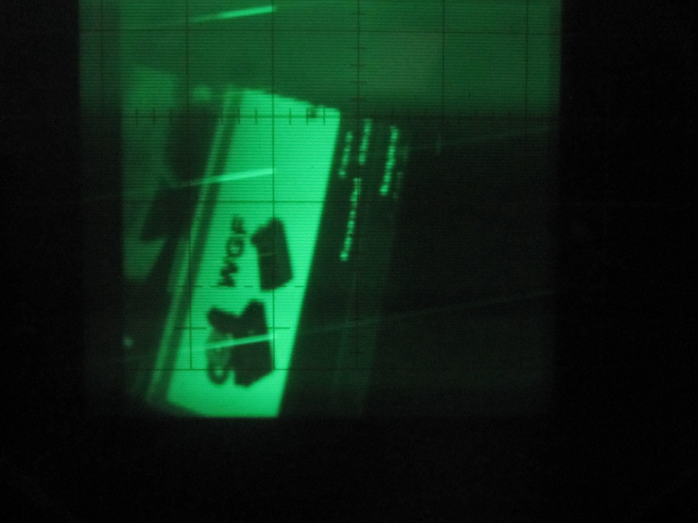 Tektronix 545B. -Zeitbasis B soll einzelne Zeile triggert und mit Länge(545B hat keine Variable für Zeitbasis B) so einstellen, dass Strahlende vor H-Sync Implus endet. -Zeitbasis A soll ganze Bild triggert, das ist schwieriger als mit Zeitbasis B, meine Lösung ist Sync-Stripper und V-Implus zu externe Triggerung. Derselbe Lösung mit Zeitbasis B (externe Triggerung). Mit Variable So einstellen, dass Strahl vor V-Implus endet. - Zeitbasis B -> Horzontial -Zeitbasis A -> Vertikal, Zeitbasis-A Ausgang wird an Messverstärker einspeisen und so einstellen, dass es ca 4:3 Seitenverhältnisse ergibt (ich bin da faul) -Videosignal wird verstärkt an Z-Eingang reinspeisen.