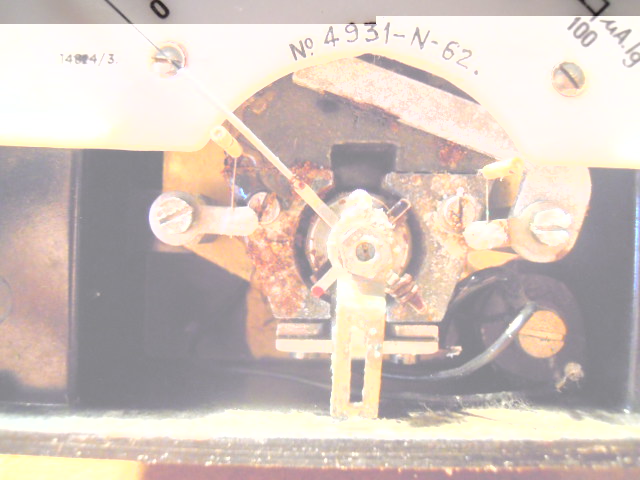 Ja , ich habe grade auf die federn gemessen(siehe foto oben) un die widerstand is 9999999...Mohm.Ist definitiv kaput. Ist also ganz festgerostet (wassereintritt?)Ich habe jetzt ein 25µA gekauft in the US (hersteller Simpson ist 4,8 inch breite). Ich versuge mal das innenwerk zu wechseln und neu calibrieren. Mechanisch habe ich ein drehbank und metalfrasemaschine zum verfugung , wen das nicht geht hab ich noch ein 50mV (Triplet US) irgendwo muss das moglich sein aber das werd nerven und schwitzen .mfg Guido